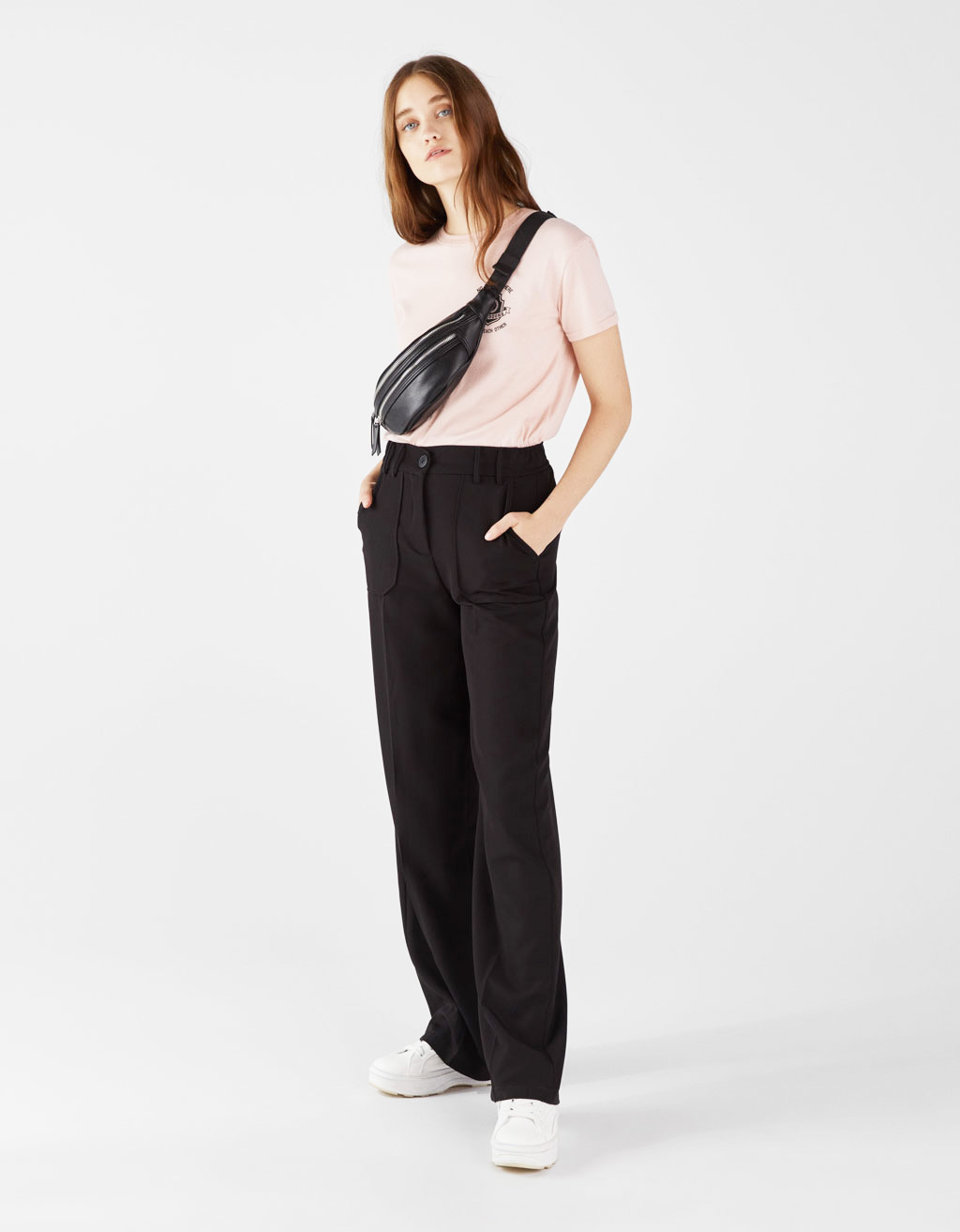– Features: High Waist, Elastic Waist with Drawstring Belt, Two Side Pockets, Straight Leg, Tapered/Carrot, Turn Up